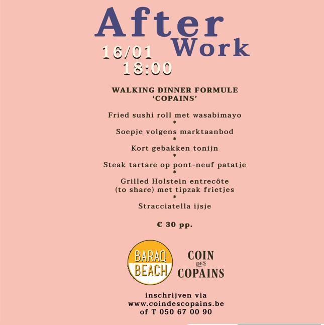 ’s Avonds bent u van harte welkom voor een diner én om te blijven plakken met een goed glas… Tot snel!